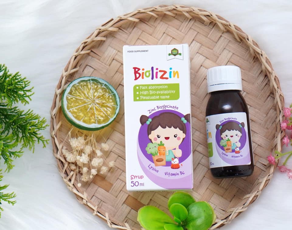 - Kẽm Amin : Biolizin bổ sung Kẽm nguyên tố dưới dạng Amino Acid Chelate hấp thụ dễ dàng vào cơ thể cao gấp 43.4 lần so với những dòng kẽm thông thường đảm bảo cung cấp đủ lượng kẽm theo lượng uống vào. Kẽm giúp kích thích vị giác tăng cảm giác thèm ăn, tăng hấp thu thức ăn và điều trị tiêu chảy.