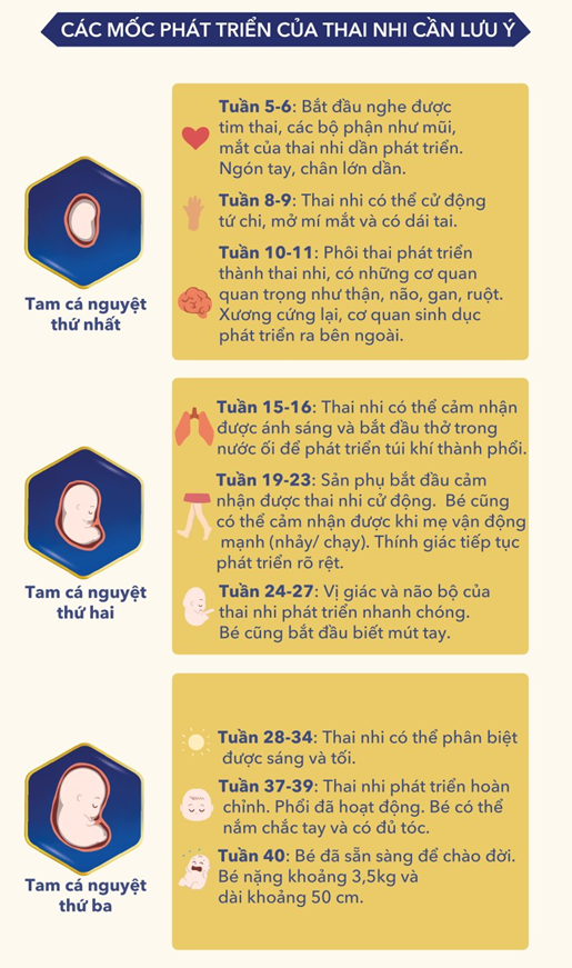 Thời gian mang thai là một hành trình kỳ diệu với nhiều cung bậc cảm xúc như lo lắng, hồi hộp và háo hức với mỗi sản phụ. Cùng tìm hiểu những mốc thời gian được cho là đáng chờ đợi nhất trong mỗi thai