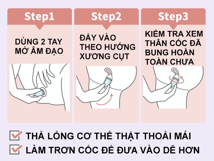 Sau đó bạn có thể làm theo các bước dưới đây để đưa cốc nguyệt san vào âm đạo: