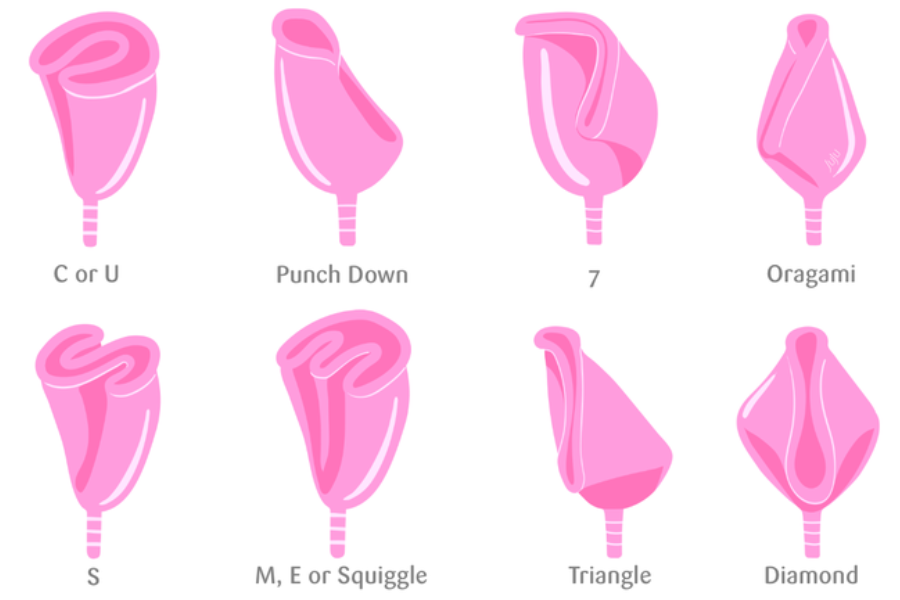 Gấp cốc nguyệt san: Có nhiều cách gấp khác nhau, nhưng hai cách phổ biến nhất là gấp hình chữ C và gấp hình con sò. Bạn có thể thử nghiệm xem cách nào phù hợp với mình nhất.