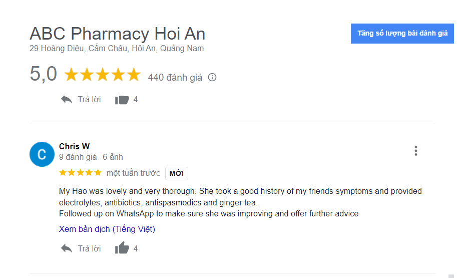 Our commitment to providing the best pharmacy services in Hoi An has earned us the trust and loyalty of many satisfied customers. As a leading drugstore in Hoi An, our dedication to excellence in healthcare is reflected in the positive feedback and recommendations we receive from those we've had the privilege to serve. Don't just take our word for it; you can verify our exceptional pharmacy service by checking out the numerous positive reviews on Google. We take great pride in the confidence our customers place in us as the go-to drugstore in Hoi An , and we strive to maintain the highest standards of care for your well-being.