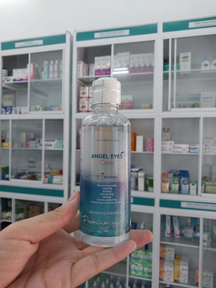 Nước ngâm kính áp tròng Angel Eyes Care là dòng nước ngâm kính áp tròng cao cấp được nhập khẩu trực tiếp từ Hàn Quốc. Sản phẩm được Bộ Y Tế Việt Nam cấp phép lưu hành tự do. Tác dụng: bảo quản kính áp tròng, tăng cường tuổi thọ lens, diệt khuẩn, làm sạch protein đọng trên lens