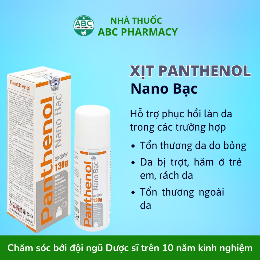 - Sản phẩm Xịt bỏng Panthenol Nano Bạc được sử dụng phổ biến cho những trường hợp trầy xước da do bỏng, bỏng nước nóng, bỏng do hơi nước.