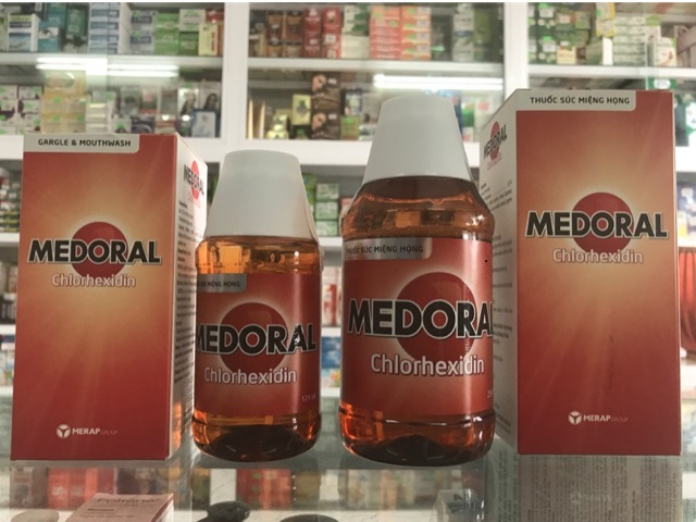 Với hoạt chất Chlorhexidin digluconat 0.2% ngoài ra còn có các tá dược: Maltitol, xylitol, sucralose, hương Kalamansi, kolliphor RH 40, tinh dầy cam, menthol, ethanol, propylen glycol, nước tinh khiết. Thuốc súc miệng sát khuẩn vùng họng Medoral có tác dụng khi súc họng/miệng kỹ trong khoảng 1 phút với 10ml, mỗi ngày 2 lần: